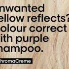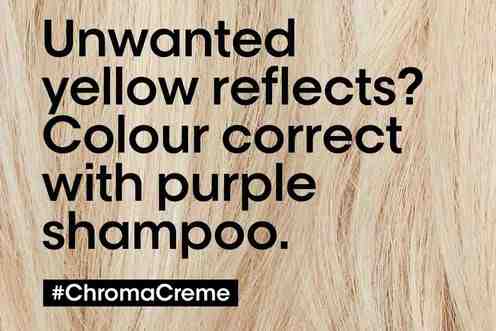 Chroma Crème Purple instantly neutralises all unwanted yellow reflects and intensely nourishes the hair fibre, without weighing it down, for a superior colour correction and care.