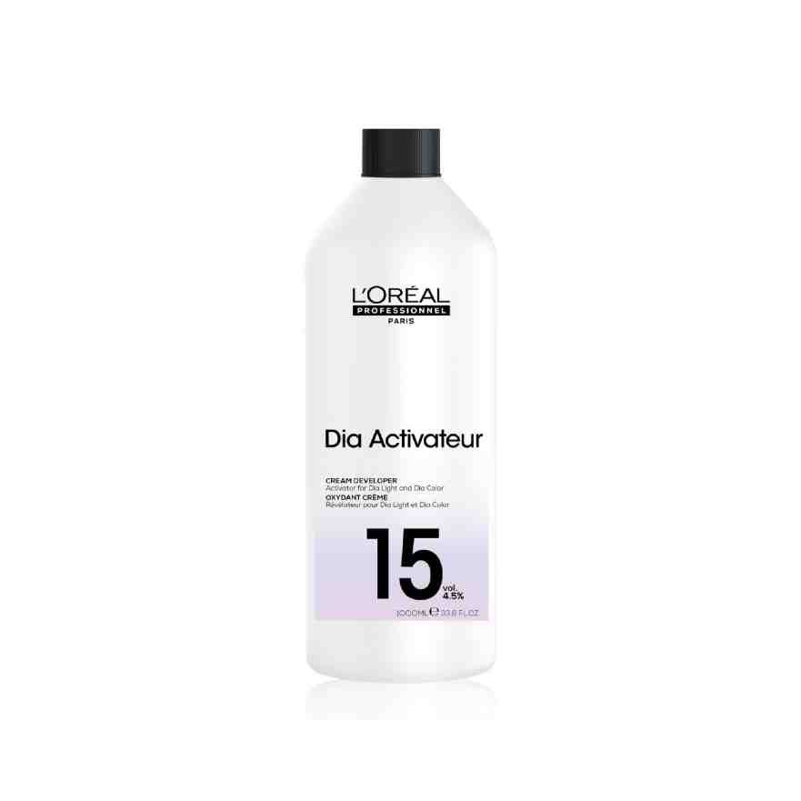 DIActivateur 15-volume is formuated to be used with Dia color light demi-Permanent hair color. Dia color for color-treated or natural hair. Mixes in a 1:1.5 ratio with 15-vol. (4.5%) DIActivateur Developer.